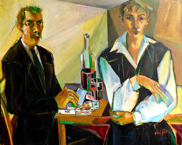 La vente du fond d’atelier permettra d’outiller cette communauté fondée sur l’amitié et la mise en commun des compétences. Peinte en 1973 la Patience de Pénélope dévidant son écheveau dans sa dernière toile fait écho au titre de la toile peinte en 51. Le tableau dédié à ses nouvelles amours s’appelle “les oiseaux morts”. NB: Cette toile qui de mémoire est d’un format de 130 X 150 est roulée chez notre maman et aurait aussi besoin d’être montée sur châssis. « Il n’y a de jugement que dernier » écrivait-il durant les années 60 dans son carnet de bord. Cette pensée fera le titre du premier livre de sa veuve. Vous me dîtes que Michel Patrix est apprécié des vrais amateurs d’art. J’espère avoir montré avec ce texte que son parcours témoigne de la multiplicité des enjeux de la libéralité. « In pratical terms, those who believe in the liberal story live by the light of two comandements : create and fight for liberty » écrit Yuval Noal Harari dans « 21 lessons for the 21th century ». Peut être donc est-ce sa fiévreuse inquiétude qui les touche. La fiévreuse inquiétude de l’humain qui joue avec le feu afin de le domestiquer. Mon père me confiait quelques mois avant son décès, qu’il souhaitait de longue date peindre « le bal des ardents ». |